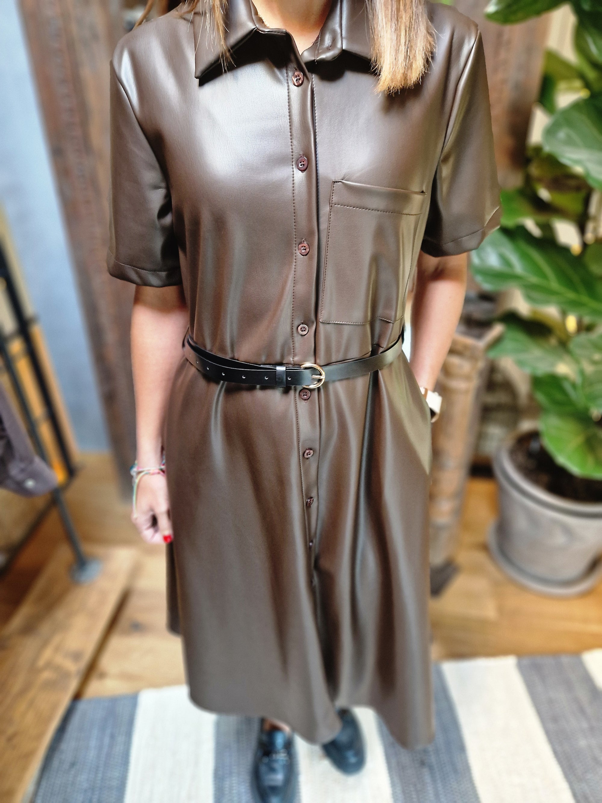 ABITO IN ECOPELLE CON CINTURA